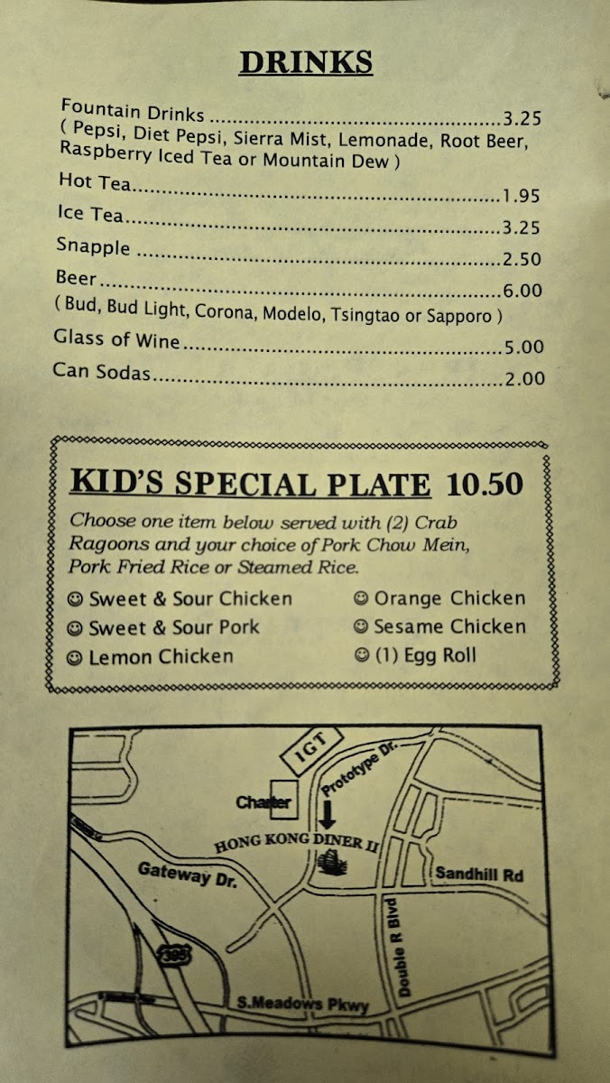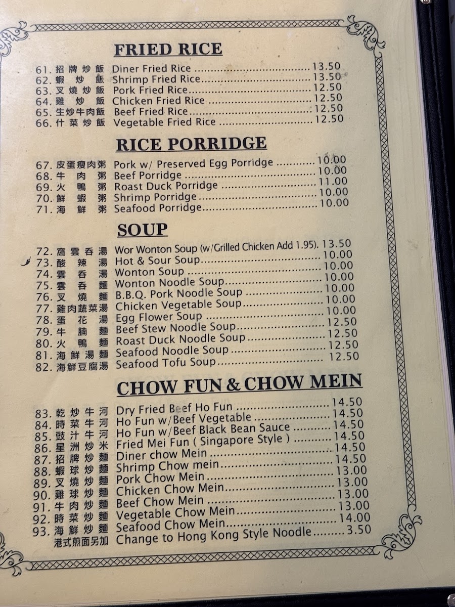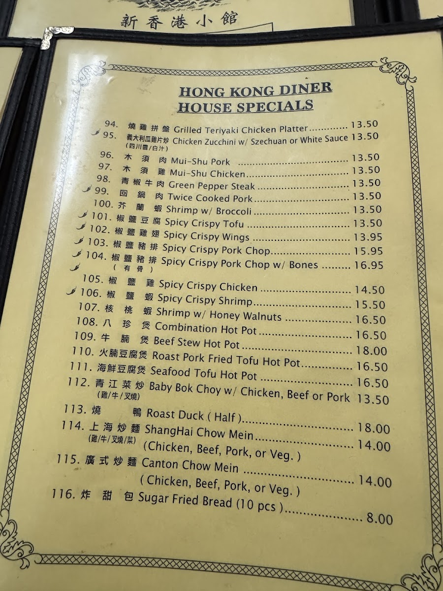 Hong Kong Diner Menu